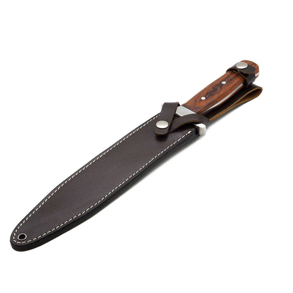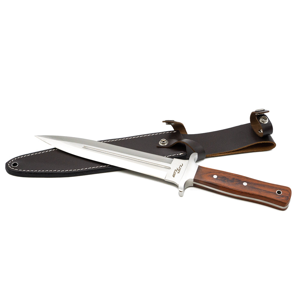 Das Parforce Messer Boar Hunter verfügt über eine 3,9 mm starke beidseitig geschliffene Klinge mit Hohlkehle. Schöne Holzgriffschalen und sichere Parier Elemente runden sein Design ab. Inklusive Lederscheide